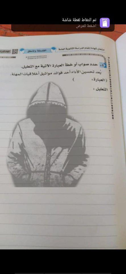 تداولت بعض صفحات الغش الالكترونى امتحان مادة الفلسفة والمنطق الذى يؤديه طلاب الثانوية العامة " الشعبة الادبية " اليوم, وذلك بعد مرور 40 دقيقة من بدء الامتحان.
